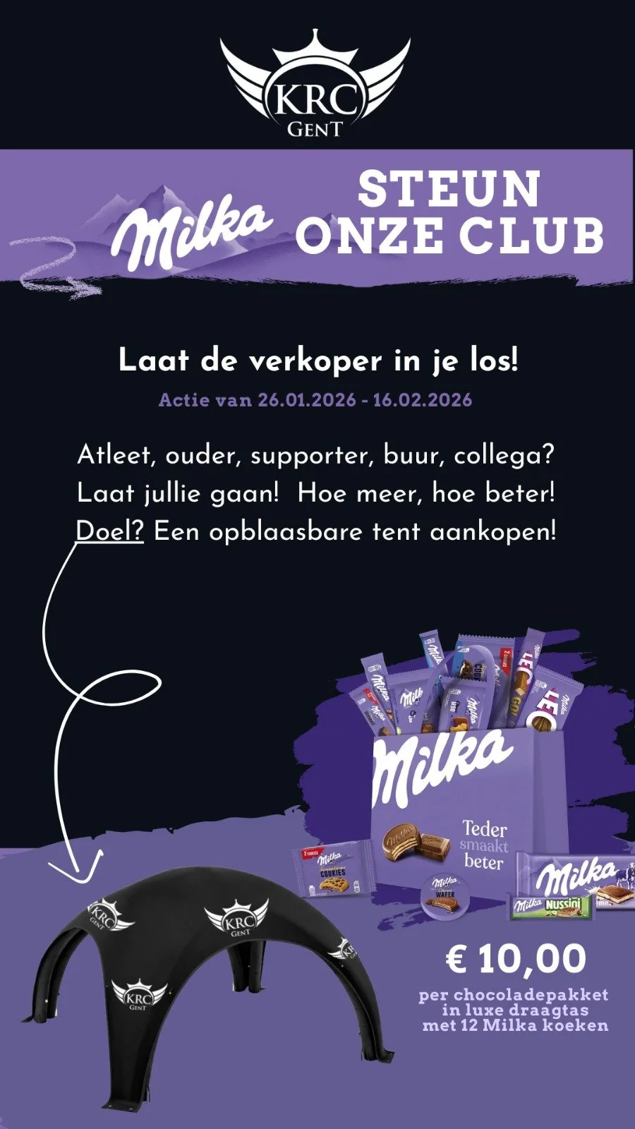Van 26.01 tot 16.02.2026 verkopen we chocoladepakketten van Milka!