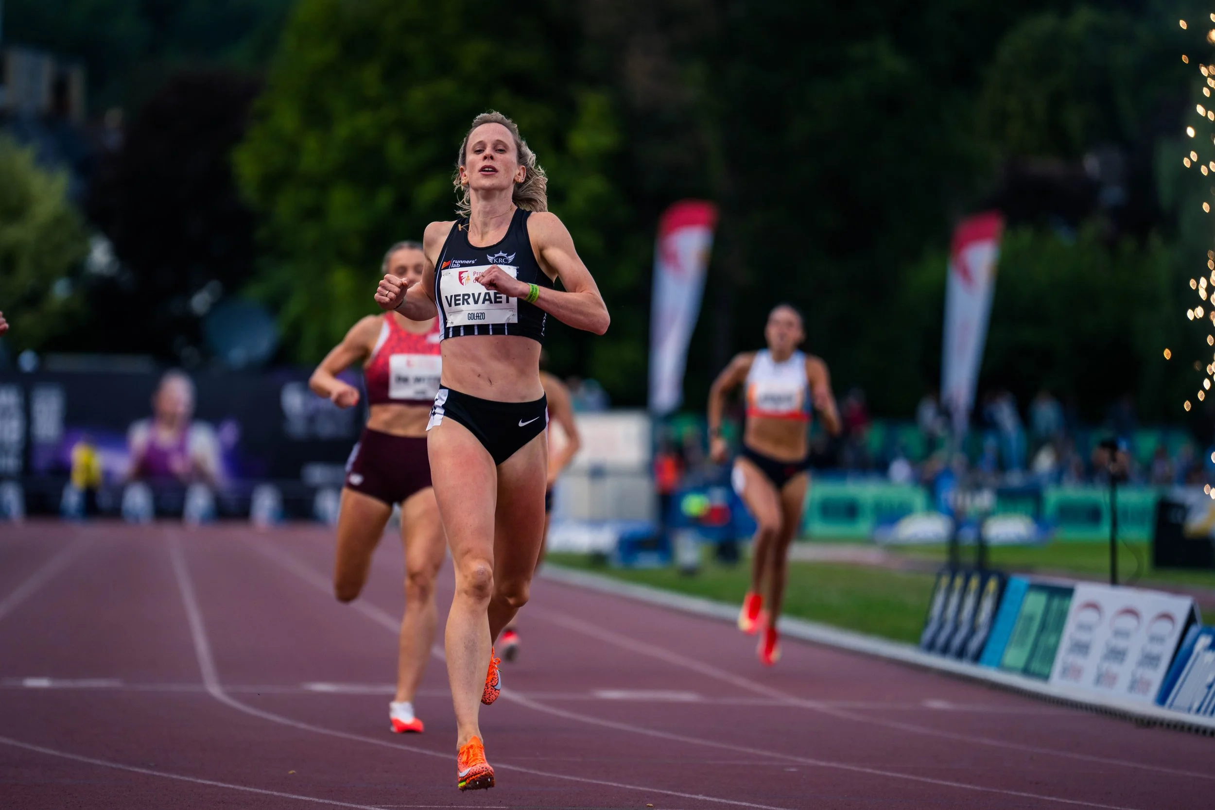 Het kortste hordenummer luidde de start van het hoofdprogramma in. Laures Bauwens kwam in de tweede snelste reeks tot 13”60 en een derde plaats, weliswaar met ongeldige rugwind (+3.9m/s). Het leverde haar een plaats op in de finale later die dag, maar hier verzaakte ze aan door terug opspelende last aan de heup. We duimen dat dit goed komt tegen het BK over dik 2 weken. Tibo De Smet trad na lange tijd nog eens aan in eigen land. Het clubsinglet bracht hem jammer genoeg niet het nodige geluk, want opnieuw gaf de chrono niet het gewenste resultaat aan. De consistentie waarmee hij die rond die 1’46”88 loopt is bijna niet te geloven, maar daar koopt hij zich (voorlopig) geen ticket mee richting het WK in Tokio. Hij blijft echter strijdvaardig, zaterdag tijdens de KBC-nacht volgt een nieuwe kans! In het internationale veld werd hij wel mooi vierde. De mannen van de nog langere adem mochten de avond afsluiten. De eerste reeks van het hoofdprogramma op de 1500m was er eentje om naar uit te kijken met Jennen Mortier en Robbe Camphens aan de startlijn. Jennen bewees dat hij in een onderling duel steeds dat tikkeltje meer kan door naar de vijfde plaats te lopen in 3’46”38 waarmee hij zijn 4 jaar oude PR naar de prullenmand verwees. Robbe volgde iets verder als tiende in 3’48”66.